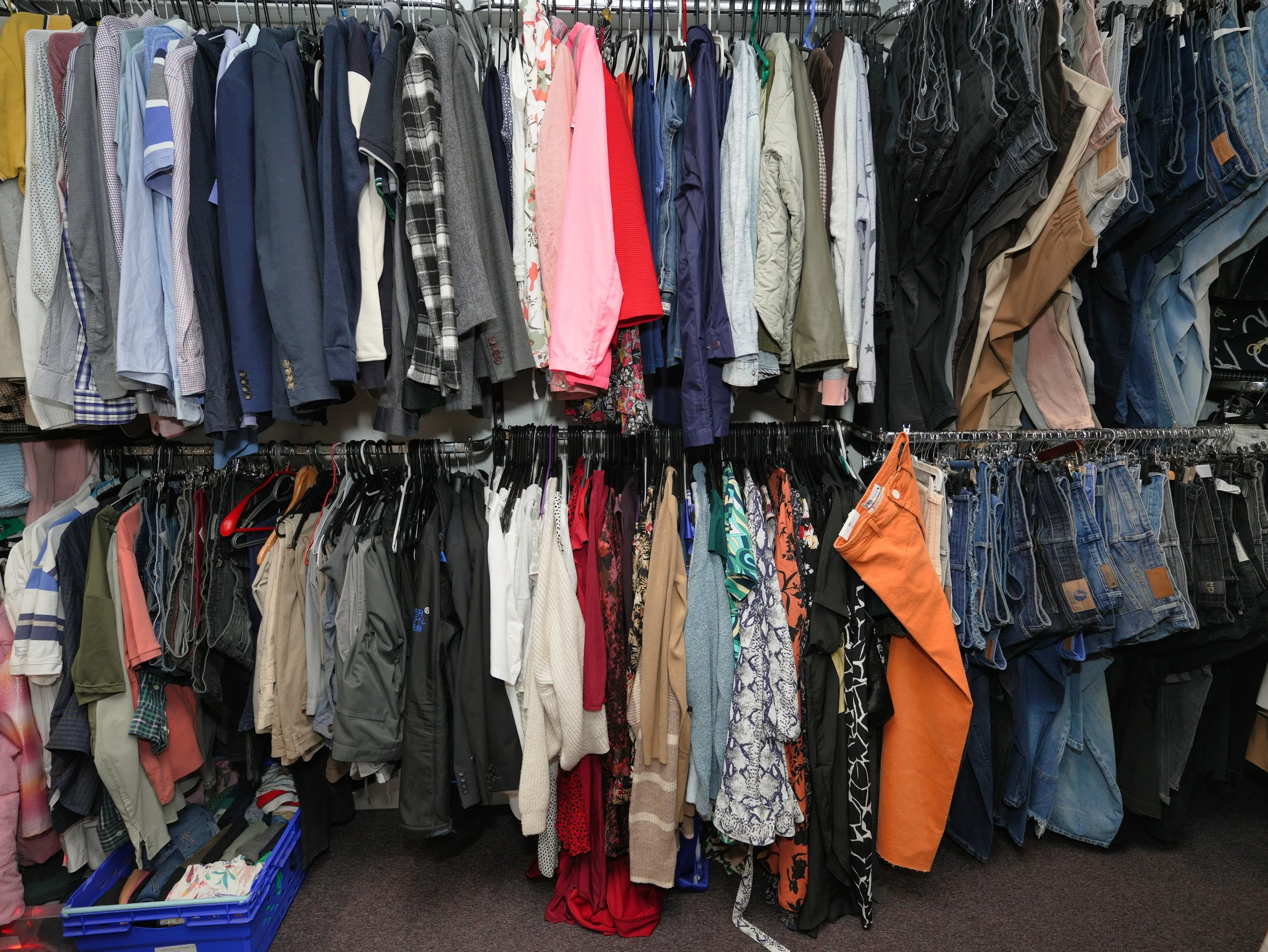 A small percentage of clothes received to our swap shop are re-sold to raise funds for our non-profit activities